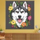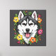 Lienzo Husky Sled Dog And Colorful Mirablis Flowers