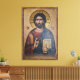 Icon of the Jesus Christ. Beautiful design of the icon of the Jesus Christ with a wood-colored frame and letters printed in gold.