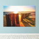 Rompeolas de madera en la costa del Mar del Norte en Zelanda, Países Bajos, durante la puesta del sol