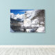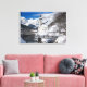Paisaje de lienzo impreso en la famosa iglesia de San Sebastián en la nieve respaldada por altas montañas de los Alpes con un puente y un pequeño arroyo en Ramsau b. Berchtesgaden, cerca de Austria en Alemania en invierno.