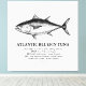 Ilustración detallada de la historia natural del atún rojo del Atlántico, con datos biológicos. Perfecta para biólogos marinos y amantes del océano.