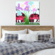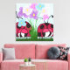 Los cutáneos ladybugs se encuentran entre un montón de flores coloridas. Es amor a primera vista por estos dos bugs de amor. La hierba verde bajo ella, las flores son moradas, rosas y azules con tallos verdes. Basado en una obra de arte original de © One Artsy Momma.