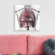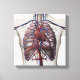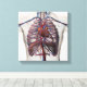 Ilustracion médico del pecho masculino con arterias, venas, corazón y jaula de costillas.