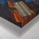 Las láminas de lona cuelgan susurros celestes, las plumas se sumergen en el resplandor de la luna. Su presencia, un himno en versos silenciosos, la gracia de un ángel, un secreto que sólo conocen las estrellas. Obra impresionista de la artista Kimberly Anne Stevens