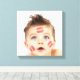 Foto del pequeño y lindo Cupido retrato de niño bonito con besos rojos en sus mejillas aislado de fondo blanco, niño curioso con hermosos ojos azules mirando en cámara, Día de San Valentín © y ® Bigstock® - Todos los derechos reservados.