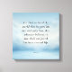 Este diseño de color azul cálido evoca una sensación de calma y tranquilidad. Los pavimentos mullidos mezclan tonos azules que recuerdan a un cielo tranquilo o a unas olas suaves. En el centro, el texto de Juan 3:16 es bellamente representado en un guión elegante, transmitiendo la profundidad del mensaje: "Por Dios amó tanto al mundo que dio a Su único hijo". La textura acuarela que fluye aumenta la resonancia emocional del verso, invitando a la reflexión y a la meditación. Esta pieza sirve como un recordatorio sereno del amor y la esperanza, perfecto para cualquier espacio que busque inspirar y levantar.