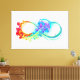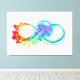 Símbolo infinito multicolor con medusa brillante arcoiris decorado con largos tentáculos sobre fondo blanco. Mariscas arcoiris.