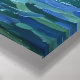 A representation on canvas in the impressionist pictorial style of the sea inland with boats in the distance.