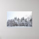 La imagen captura un paisaje sereno de invierno con un bosque cubierto de nieve. Diversos árboles, incluso verdes y caducifolios, están llenos de nieve, creando una paleta de colores blanco y gris. Al fondo, una gran montaña se ve parcialmente oscurecida por la niebla o las nubes, lo que añade profundidad a la escena. El suelo también está cubierto por una gruesa capa de nieve.