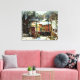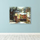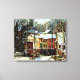 Deliciosa pintura vintage del impresionista estadounidense Frederick Mulhaupt de invierno en Gloucester, Massachusetts con carruaje y caballos en una calle de ciudad bordeada de nieve.