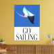 Go Sailing vintage afiche de viaje náutico estilo años 80 de un barco de vela en el océano.