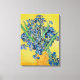Irises (1890) Vincent van Gogh. Vida positiva y encantadora. Un gran jarrón amarillo con un ramo de iris azules sobre un fondo amarillo. Reproducción de obras famosas de imágenes artísticas de dominio público.