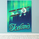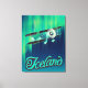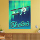 Afiche de viaje de estilo vintage de Islandia de las auroras boreales y un avión ligero que vuela por delante.