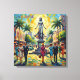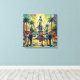 Experience the vibrant soul of Jakarta through this electrifying impressionist masterpiece that celebrates Indonesia's dynamic capital city in all its modern energy, cultural pride, and tropical splendor. A magnificent female statue rises majestically at the composition's heart, her graceful form rendered in rich purples and iridescent hues that seem to glow with spiritual presence and national pride, her flowing robes and outstretched arms celebrating freedom and cultural identity. The luminous sky erupts overhead in swirling golds, soft yellows, and brilliant blues that seem to dance with tropical warmth and artistic passion. Historic colonial buildings in warm terracotta, cream, and russet tones frame the plaza on both sides, their architectural character blending seamlessly with modern structures and verdant tropical foliage. Towering palm trees with lush emerald and golden-green leaves provide natural frames and shade, creating the essence of Jakarta's tropical identity. Elegant figures in vintage attire stroll confidently through the sun-drenched plaza—women in jewel-toned dresses (burgundy, sapphire blue, turquoise, coral orange), men in crisp tailored suits and Panama hats, all carrying leather handbags and exuding refined sophistication. A vintage automobile in soft turquoise adds nostalgic charm to the scene. The cobblestone plaza beneath their feet glows in warm honey tones with shadows dancing in blues and purples. The artist's passionate, textured brushwork infuses every element with movement and cultural celebration: thick impasto strokes create dramatic depth, bold color choices honor Indonesian pride and tropical vitality, and the composition pulses with the authentic spirit of Jakarta's urban renaissance. Perfect for those who cherish Southeast Asian culture, Indonesian heritage, vintage travel aesthetics, monumental architecture, and art that celebrates the intersection of tradition and modern dynamism in one of Asia's most vibrant cities, this stretched canvas transforms your space into an eternal gateway to Jakarta's most magical and inspiring moments.