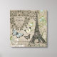 Jardín francés vintage Torre Eiffel mariposas tela estirada con flores