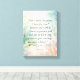 Este diseño acuático presenta delicados productos botánicos en tonos suaves de azul, verde y coral, creando una atmósfera serena y de ensueño. La suave mezcla de colores evoca una sensación de tranquilidad y armonía. El inspirador verso de la Biblia, Jeremías 29:11, está en el centro de esta composición, exhibida elegantemente, recordándonos la esperanza y el propósito divino. El efecto general es alentador y tranquilizador, lo que lo convierte en una adición perfecta a cualquier espacio que necesite aliento y serenidad. Esta obra de arte captura la esencia de la naturaleza y la fe de una manera visualmente impresionante.