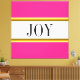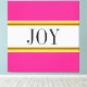 Las pinturas de caramelo de cinta festiva resaltan el hermoso "JOY" en una gran tipografía elegante que llena una franja blanca central. Unas amplias y audaces franjas de color rosa claro, encima y debajo, completan la composición festiva.