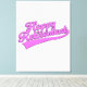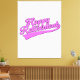 Logo de Happy Retirement con un texto rosa brillante de estilo vintage.