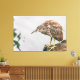 Una garza nocturna juvenil coronada de negro se para en una roca, con su cuerpo frente al lado derecho de la imagen. El plumaje del pájaro es una mezcla de plumas marrones, blancas y negras, con una distintiva corona negra en la cabeza. Sus largas patas amarillas están encaramadas en la roca, y su pico agudo es apuntado hacia abajo.