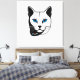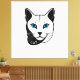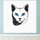 Lienzo Katzen Kopf in Schwarz-Weiß Blaue Augen + Text