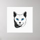 Lienzo Katzen Kopf in Schwarz-Weiß Blaue Augen + Text