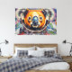Esta vibrante obra de arte de Otis Porritt presenta un koala encantador, representado en un llamativo estilo impasto, luciendo un traje de astronauta completo. Su pelaje estalla con cálidos tonos de naranja, rojo y amarillo, contrastando con su distintiva nariz azul y sus ojos anchos y curiosos que miran desde dentro del visor del casco. El traje espacial naranja del koala presenta acentos metálicos azules, mientras que el fondo cósmico es una rica tapicería de azules y púrpuras profundos, salpicada de planetas luminosos y coloridos y una luna prominente y texturizada. Los trazos gruesos y expresivos crean un sentido dinámico de movimiento y profundidad, dando a la pieza digital una cualidad táctil y pictórica.