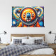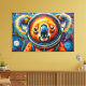 Esta vibrante obra de arte de Otis Porritt presenta un koala encantador, representado en un llamativo estilo impasto, luciendo un traje de astronauta completo. Su pelaje estalla con cálidos tonos de naranja, rojo y amarillo, contrastando con su distintiva nariz azul y sus ojos anchos y curiosos que miran desde dentro del visor del casco. El traje espacial naranja del koala presenta acentos metálicos azules, mientras que el fondo cósmico es una rica tapicería de azules y púrpuras profundos, salpicada de planetas luminosos y coloridos y una luna prominente y texturizada. Los trazos gruesos y expresivos crean un sentido dinámico de movimiento y profundidad, dando a la pieza digital una cualidad táctil y pictórica.
