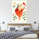 Diese fesselnde Illustration zeigt ein stilisiertes anatomisches Herz, das mit botanischen Elementen verflochten ist. Das Herz ist in Rot- und Orangetönen dargestellt, mit detaillierten Arterien und Venen. Auf der rechten Seite des Herzens wächst eine leuchtend rote Blume, die an eine Mohnblume erinnert, während auf der linken Seite ein grüner, belaubter Zweig hervorragt. Die Kombination aus organischen und anatomischen Elementen schafft ein einzigartiges und auffälliges Kunstwerk, das sich perfekt dazu eignet, jedem Raum einen Hauch von naturinspirierter Eleganz zu verleihen.