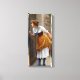 Este diseño presenta un cuadro del artista italiano Eugene de Blaas (1843-1931). Muestra a una hermosa joven escondida detrás de una puerta de madera en un jardín mientras intenta escuchar una conversación sin ser vista. También está mirando a través de la grieta en la puerta, intensamente interesada en lo que está pasando al otro lado de la puerta. La mujer está usando un vestido simple y medias azules; también tiene una bufanda azul claro que cubre su cuello. La obra original fue pintada en 1906.