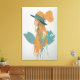 Esta cautivadora obra de arte cuenta con una misteriosa figura femenina adornada con un gorra naranja de gran tamaño, decorado con un arco y detalles de encaje intrincados. Las corrientes del gorra son fisuras que se parecen a cabellos o viñas en varios matices de naranja, entrelazadas con hojas y tallos verdes, creando una armoniosa mezcla de lo humano y lo natural. El fondo liso y claro acentúa los colores vivos y las formas orgánicas, haciendo de esta pieza una adición perfecta a cualquier colección de arte.