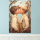 Una escena cálida y tierna que muestra a dos muchachos compartiendo un beso inocente en medio de un telón de fondo de ramas cargadas de manzanas y mariposas revoloteadoras. Capturada en un estilo que recuerda a Norman Rockwell y J.C. Leyendecker, esta obra de arte exuda encanto y nostalgia, celebrando la pureza y belleza de la infancia.