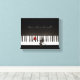 Personalizado envolvió lienzo para los amantes de la música con una bella vida quieta con una rosa roja sobre las teclas de piano de cola en blanco y negro y eslogan: "La música salvará al mundo". Imagen también disponible como poster y otras impresiones.