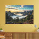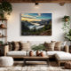 Majestuosas montañas se elevan bajo un cielo dorado y azul, envueltas en una niebla serena. Una delicada red geométrica se superpone a la escena, transformándola en un sueño surrealista donde la naturaleza cruda se encuentra con el arte suave. Colores vibrantes, vegetación exuberante y el contraste entre realismo y abstracción crean una obra que inspira paz y asombro, perfecta para aquellos que buscan conectar con la magia del mundo natural.
