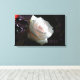 Esta foto fue tomada con una cámara Nikon. La luz de afuera estaba golpeando los pétalos justo. Flores moradas y rojas rodean el rosa. Se puede ver algo de vegetación en la foto. Esta foto fue colocada en una parte posterior de un lienzo. Disponible en 3 tamaños diferentes.