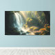 Una imagen de una cascada con bosque y sol que atraviesa el follaje