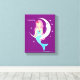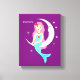 sirena de bonito sentada en una luna creciente y jugando con las estrellas. Bonita sirena en lona estirada para los niños. Recuerda con un nombre personal al personalizar; excelente idea de regalo de sirena para una niñita.