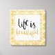 La vida es bello texto central en escritura moderna con un fondo elegante con motivos dorados y blancos