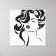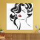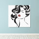 La temática de las niñas vintage, muy agradable, es en blanco y negro. Una hermosa cara de mujer con labios rojos y pelo rizado. Dibujo divertido, retro.