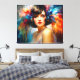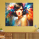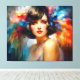 Entre en el glamour de los locos años veinte con nuestra encantadora representación de una dama de los años 20 adornada con un caleidoscopio de plumas multicolores en su cabello. Esta escena vivaz captura el espíritu de la época, mientras la dama exude elegancia y talento con su vibrante y dinámico cabecero de plumas. Cada pluma es una ráfaga de color que crea un efecto caleidoscopio fascinante y armonioso. Los detalles intrincados de su conjunto y el juego de plumas evocan la exuberancia y la sofisticación de la era del Jazz. Esta obra de arte invita a revivir la energía y la vitalidad de los años 20, donde el estilo y la creatividad no conocían límites.