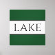 Este diseño deportivo presenta el texto "LAKE" centrado dentro de una amplia franja blanca central resaltada con delgadas pinzas negras que se unen a las rayas verdes del campamento. El texto se puede personalizar.