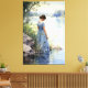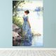 Esta conmovedora pintura acuarela captura un momento de tranquila introspección al borde del agua. Una joven, con un largo vestido azul claro, se para al borde de un tranquilo lago. Su mirada se dirige hacia abajo hacia el agua, su postura que sugiere un toque de dolor y un sentimiento de soledad. Las suaves cualidades fluidas de la acuarela realzan la suave melancolía de la escena, la calidad reflexiva del lago y el suave tinte de su vestido. Este artículo habla de momentos de contemplación silenciosa, del consuelo de la naturaleza y de la belleza que encontramos incluso en la tristeza reflexiva.