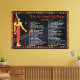 Impresión de lienzo para el diseño de las 42 leyes de Maat (afirmaciones positivas) para su casa o pared de oficina. Esta impresión de lienzo muestra Mamáes en pie con Mamáes descoloridas en las alas de fondo para resaltar las 42 Leyes de Maat en blanco.