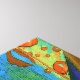 La colorida y abstracta obra de arte de esta imagen de lienzo fue creada a partir de una fotografía original de ZoeSPEAK de gotas de lluvia en frondas de palmeras. Las duchas de mediodía se convirtieron en sol por la tarde y cielo azul, y los frente y las gotas de lluvia respondían con colores tropicales de verde cal, azul acuático y naranja.