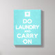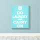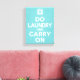 © Pela Studio / Wild Apple. La imagen presenta una caja azul con texto en blanco que dice Do Laundry y Carry On. Excelente para exhibición en lanzacohetes.