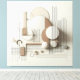 A soft three‑dimensional composition featuring circles, lines, and layered geometric shapes in warm neutral tones. The subtle depth and balanced structure create a calm, modern artwork that fits seamlessly into contemporary interiors. Part of the 3D Collection.