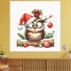 Lienzo Lechuza de Navidades cortas con sombrero de santa
