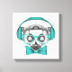 Este diseño presenta un lémur vestido con anteojos verde azulados y una corbata de arco escuchando música con audífono.