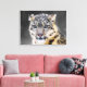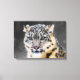 Un leopardo muy fresco con hermosas marcas en la cara, ojos azules y una nariz rosada, cubierto con un polvo ligero de nieve. Un gran regalo para cualquiera que ame los grandes gatos de la jungla.