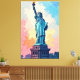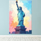 La Estatua de la Libertad se alza contra un cielo vibrante, simbolizando la libertad y la esperanza con un giro colorido.