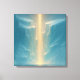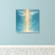 A huge glacial fissure opens beneath a ray of golden light that falls from above like a futuristic blessing.